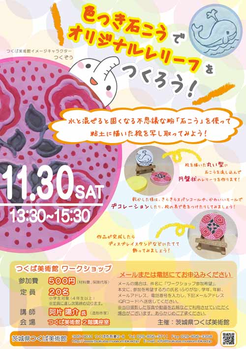 絵を描いた丸い型に石こうを流し込んで、円盤状のレリーフを作ります!