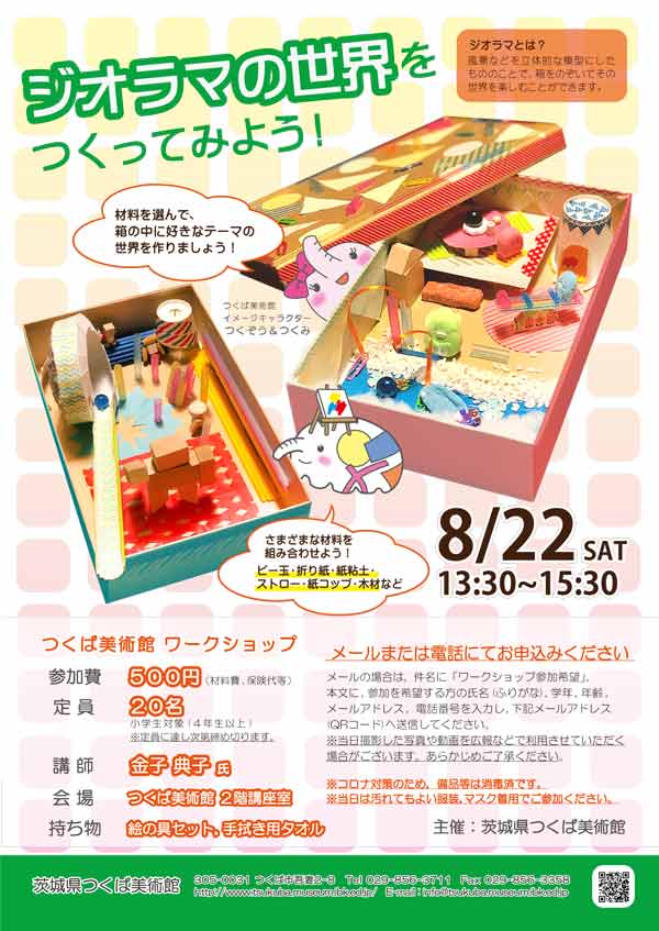 ビー玉・折り紙・紙粘土・ストロー・紙コップ・木材などから材料を選んで、箱の中に好きなテーマの世界を作りましょう!
