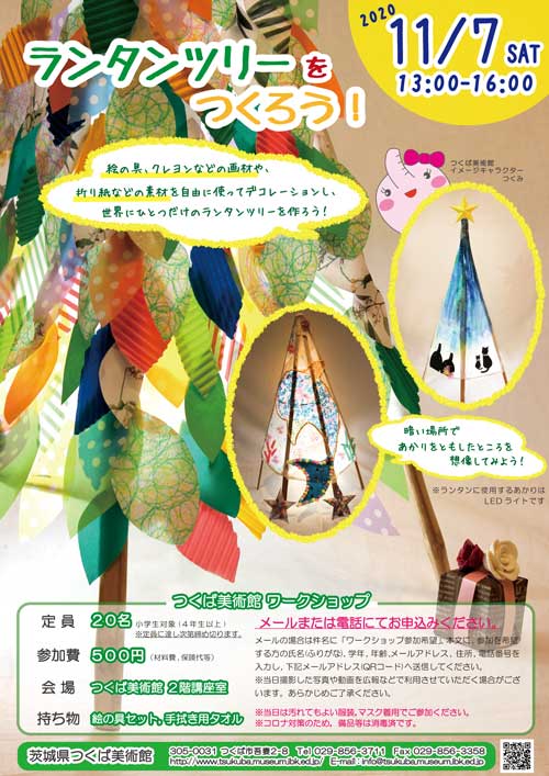 参加できなくなった場合は、なるべくお早めにご連絡ください。11月26日(水)正午以降のキャンセルにつきましては、ワークショップ「発光する記憶たち」の材料をお渡ししますので、後日美術館にて材料費500円のお支払いをお願いいたします。