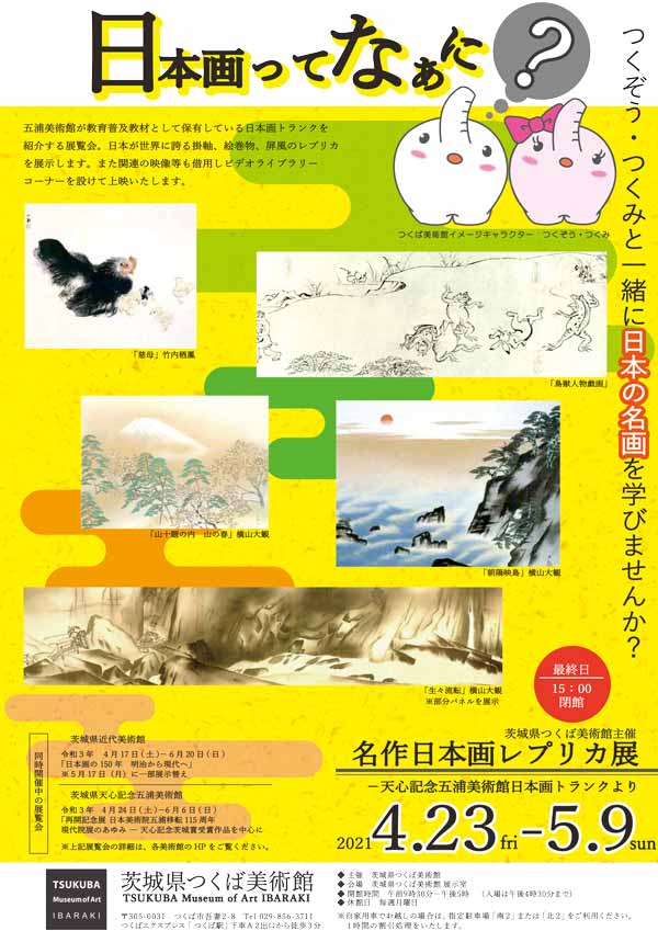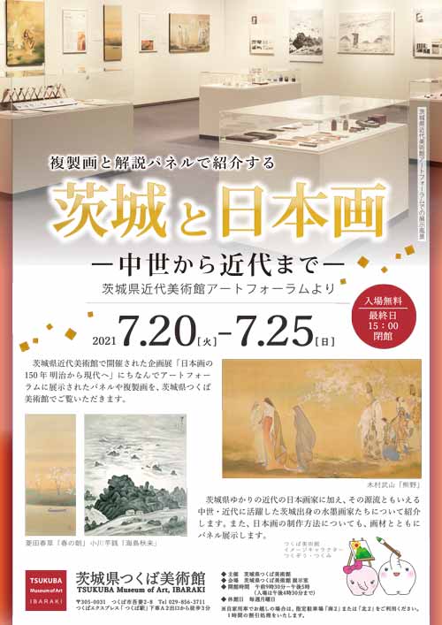 茨城県近代美術館で開催された企画展「日本画の150年 明治から現代へ」にちなんでアートフォーラムに展示されたパネルや複製画を、茨城県つくば美術館でご覧いただきます。
