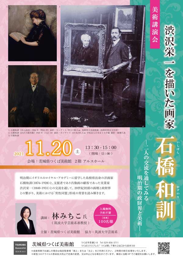 明治期にイギリスのロイヤル・アカデミーに留学した島根県出身の洋画家石橋和訓(1876-1928)と、支援者であり肖像画の顧客であった実業家渋沢栄一(1840-1931)との交流を通して、20世紀初頭の画壇と政財界との繋がり、 美術における「男性同盟」形成の背景を読み解きます。