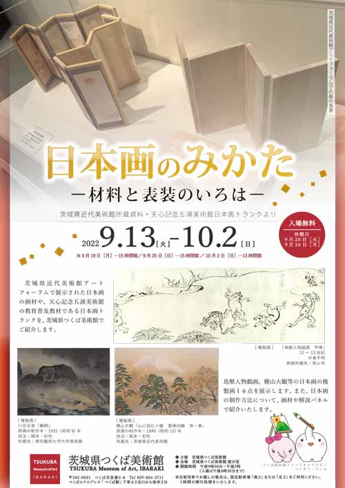 茨城県近代美術館アートフォーラムで展示された日本画の画材や、天心記念五浦美術館の教育普及教材である日本画トランクを、茨城県つくば美術館でご紹介します。