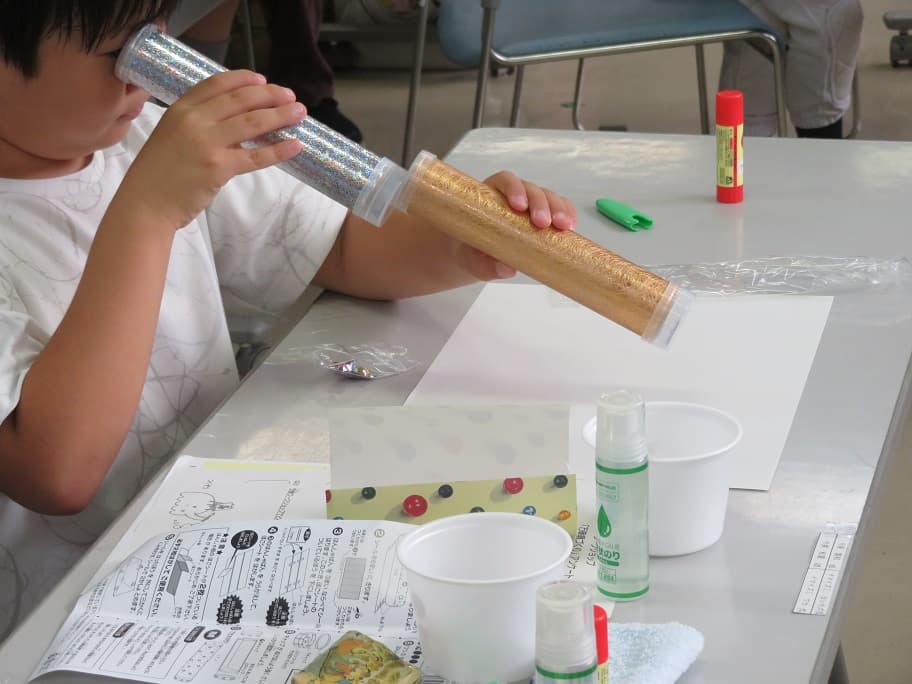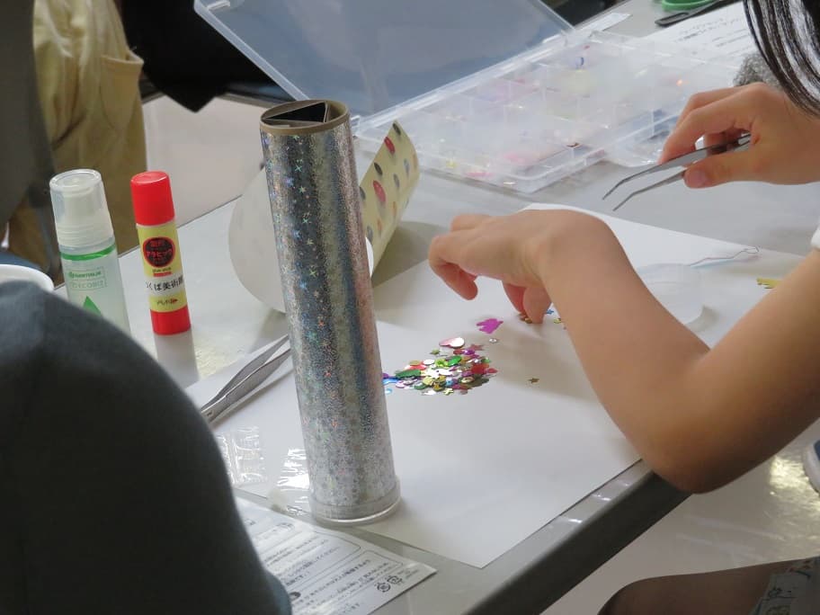 ビーズやシールなどの身近な材料を使って、オリジナルの万華鏡をつくります。