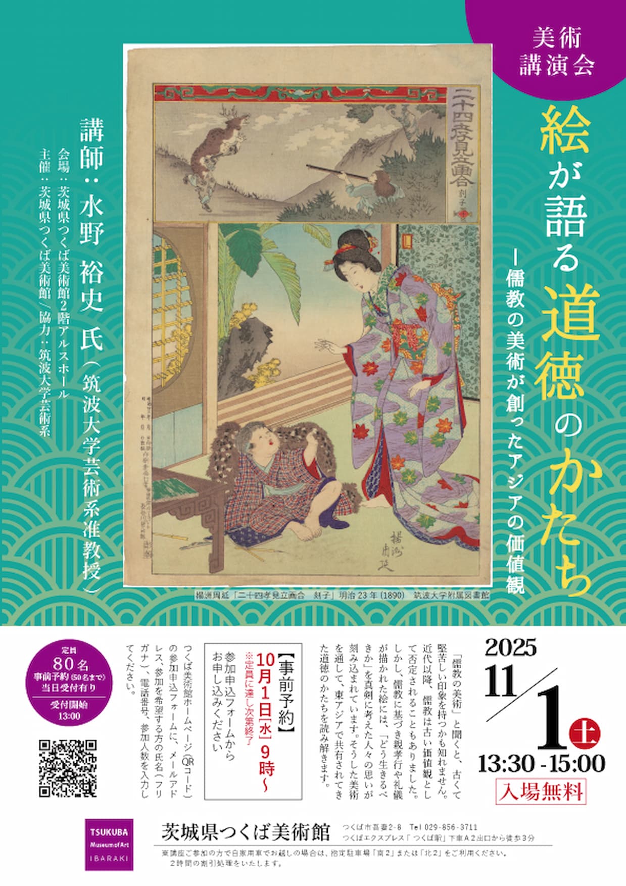 「儒教の美術」と聞くと、古くて堅苦しい印象を持つかも知れません。近代以降、儒教は古い価値観として否定されることもありました。 しかし、儒教に基づき親孝行や礼儀が描かれた絵には、「どう生きるべきか」を真剣に考えた人々の思いが刻み込まれています。 そうした美術を通して、東アジアで共有されてきた道徳のかたちを読み解きます。
